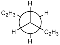 The steric clashing of the two end groups can be more clearly shown using the Newman projections.