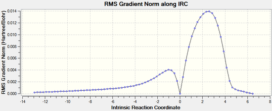 The IRC calculations were set to follow the path forwards only, to a maximum of 100 points, always calculating force constants.