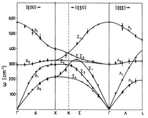 - ↑ H. Bilz, W. Kress, Phonon Dispersion Relations in Insulators, Springer-Verlag, Berlin, 1979, 50-51