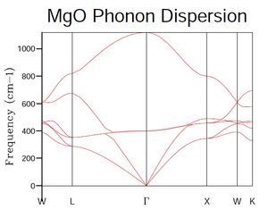 Each method makes use of DLVisualize and the General Utility Lattice Program (GULP) to perform calculations on the respective models of MgO. Here, GULP is particularly useful due to its consideration of the symmetry of repeated three-dimensional structures, which greatly reduces the time required to complete a calculation by halving the number of k-points to be considered (this factor of a half is only applicable for even shrink factors).[3] DLVisualize provides a graphical user interface for the pictorial presentation of the results of calculations on the crystal structure, including the visualisation of the phonon vibrational modes of MgO. Use of these programs in conjunction with one another will allow for the investigation of the properties outlined, namely phonon dispersion, density of states, free energy and thermal expansion coefficient.
