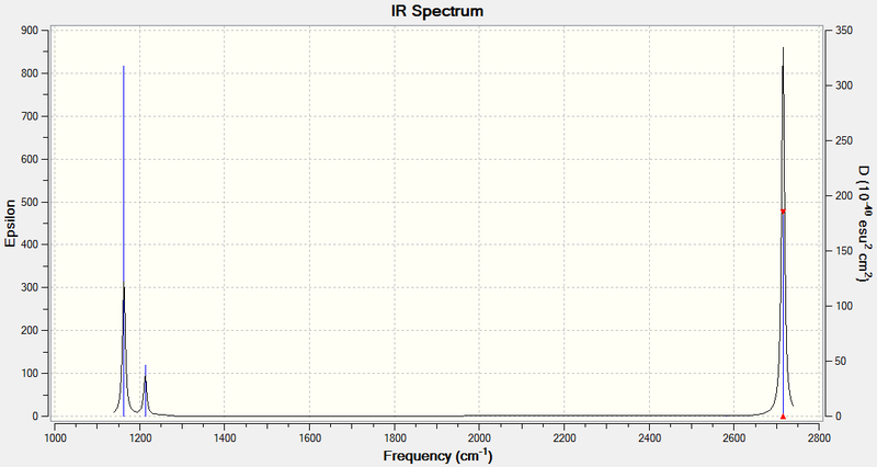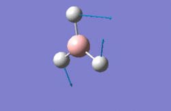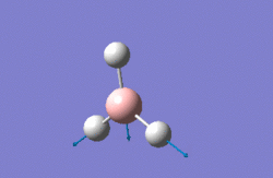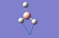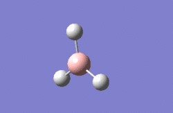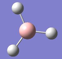 The optimised B-H bond length is 1.1923 Å and the bond angles were about 120°, with about 0.5° of error. There is a good agreement with this bond length and one determined experimentally through FTIR spectroscopy, which was 1.190 Å.[1] The fact that the bond length calculated using the 6-31G(d,p) basis set was closer to the experimental value than the one that used the 3-21G basis set shows that the 6-31G(d,p) basis set is superior.
