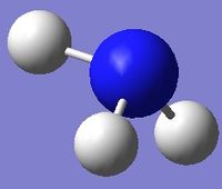 The optimised Ga-Br distance is 2.35 Å and the optimised bond angle is exactly 120°. The bond length has previously been calculated as 2.35 Å using a B3LYP method and calculated experimentally using vapour phase electron diffraction as 2.22 Å, while the experimentally obtained bond angle is 120° ± 0.1°.[2] There is a very good agreement between the calculated and experimental bond angles and a reasonable agreement between the calculated and experimental bond lengths, with the excellent agreement with the literature value for the calculated bond length showing that errors in the calculated distance are due to the limitations of the method and basis set.