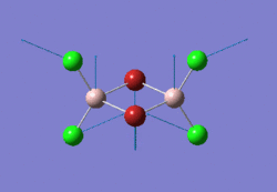 - The p orbitals of the bridging Cl atoms are in phase so there is a through space bonding interaction between them, helping to hold the molecule together.