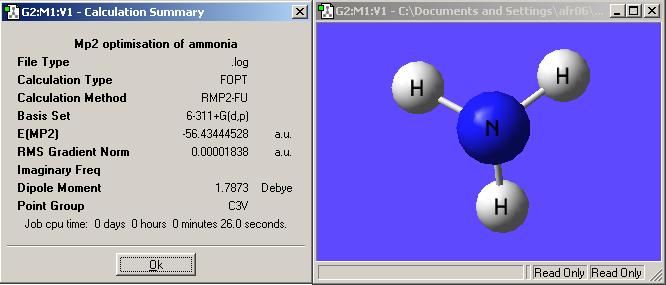 Also the actual .log output file can be opened thorough Gaussview and can be seen in the screen shot below: