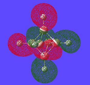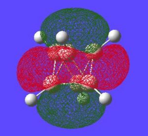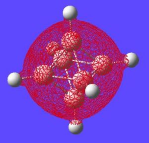 Another interesting point to make is that all occupied orbtials are bonding in the case of this cluster and no antibonding are occupied[15]. This is just like a benzene type arrangement where all the occupied orbitals lie below the non-bonding level. Looking at the evidence the 3D aromaticity of Closo-B6H62- seems likely.