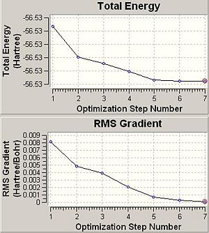 An optimisation (OPT) calculation was then run using the B3LYP method and 3-21G basis set.