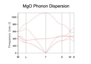 Atomic vibrations can provide various information about a system such as its thermal properties, electronic properties, conductivity, phase transitions and its free energy. In this experiment, the system under study is an ideal, 3D periodic crystal structure of Magnesium Oxide (MgO), represented as a primitive unit cell and as a conventional face centred cubic lattice (fcc).