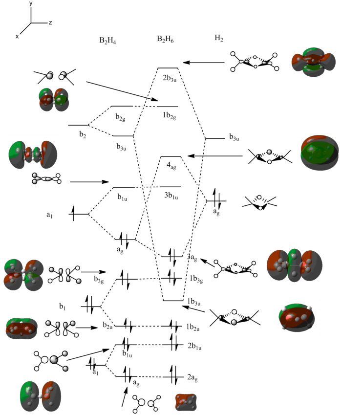 | 1 | Wagging – The centre of mass is unchanged for the molecule as the boron moves in opposite direction (like a recoil) to the hydrogens which move in unision in the z-direction | A2 ' ' | 1144.15 | 92.8665 | 1147.5 | |