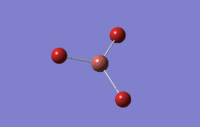 Compared to BH3 the TlBr3 has a much higher electron density, especially due to the Bromine atoms instead of hydrogens. The large electron density and the large size of the molecule results in relativistic effects, so it takes very long to calculate the wavefunction computationally and the Schrodinger equation struggles at calculating these. This is because the Schrodinger calculates all the electrons even the non-bonding ones. Therefore pseudo potential is used to avoid this as it takes into account the valence orbitals and so makes the calculation much faster. Also because thallium is larger, more diffuse and complex the 3-21G basis set is inaccurate. The LANL2DZ basis set is instead used with DFT-B3LYP method. This makes use of two Slater Orbitals to represent each atomic orbital so improves the accuracy and this is called double zeta basis function. Also it utilises the Los Alamos Effective core orbitals pseudo potentials. The D3h point group was used.