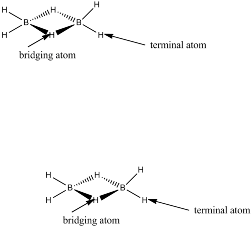| 6 | Asymmetric Stretching - One B-H bond stretches and contracts asymmetrically to the other two which stretch and contract symmetrically. In order to keep the centre of mass constant throughout the vibration when two B-H bonds lengthen the boron moves up and the other B-H bond shortens. | E' | 2737.44 | 103.7333 | 2601.5 |