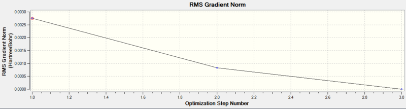 There were three iterations (as shown above) whilst optimising the structure and eventually the gradient is nearly zero. The discussion about BH3 are applicable here and hence the need of IR analysis to confirm the minima nature of the stationary point reached.