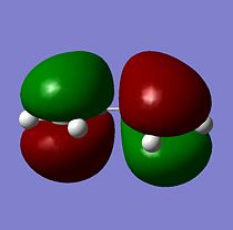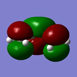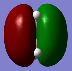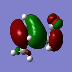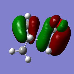 The cis butadiene optimisation from earlier was used and the ethylene MOs were calculated using optimisation and the semi-emperical AM1 method.[28]