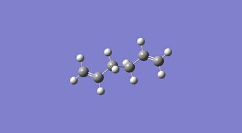 1,5-hexadiene was drawn on ChemBio3D in the anti conformer, this was then imported into GaussView and the structure was cleaned. This was then optimised using the HF method and 3-21G basis set. This was then repeated in the gauche conformer and the results obtained are shown below. This method and basis set used is reasonably accurate and achieves results in a reasonably quick time unlike more complex methods and basis sets.