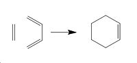 In this section I will characterise the transition structure of the diels alder cycloaddition of ethylene and cis butadiene and then study the regioselectivity of the diels alder reaction of cyclohexa-1,3-diene with maleic anhydride. The MOs of the cis butandiene, the transition state and the reaction of cyclohexa-1,3-diene with maleic anyhdride will also be modelled.