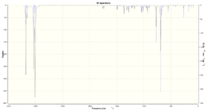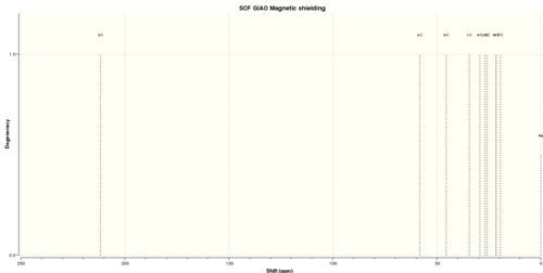 The predicted spectrum is in good agreement with that observed experimentally. All peaks can be assigned to a particular functional group within the molecule. Despite this, one would expect to observe a strong O-C-O stretch peak around 1250 to 1170 cm-1 which is present in neither spectrum. Table 11. gives chemical shifts for C-13 NMR results predicted by computational chemistry. Again, the peaks have been assigned and compared to literature values.