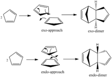 Cyclopentadiene readily dimerises via a Diels-Alder cycloaddition. Since there are two possible orientations of the molecules, there are hence two possible isomers that can be formed; the endo-isomer and the exo-isomer (see figure 1). It is however, known that the dimer formed from the reaction is predominantly of the endo-form. By using molecular modelling it is possible to calculate the relative energies of each of the aforementioned forms and determine whether this observed stereoselectivity is driven predominantly by thermodynamics or kinetics.
