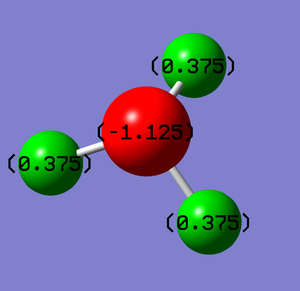 Due, to silicon's having alower electronegativity than both oxygen and hydrogen, it has a positive charge of 0.681. Oxygen draws most of the electron density, giving it a charge of -0.502 and the two hydrogen atoms each have a charge of -0.90.