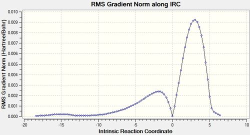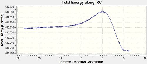 The IRC was also calculated in order to both ascertain the transition state as well as obtain more information about the reaction. The outcome can be seen below.