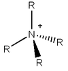 [NR4]+ (where R is an alkyl group) is commonly depicted with the positive charge on the nitrogen atom, as shown. However, this is a misleading description of the ion. The positive charge is placed on nitrogen as it has 4 bonds, as opposed to it's neutral standard valence with 3 bonds and a lone pair. Under a classical interpretation, this would result in only 4 electrons 'belonging' to nitrogen, as opposed to 5, resulting in a positive charge.