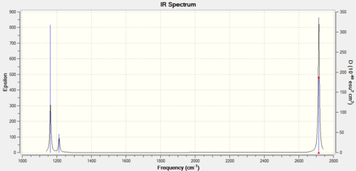 The frequency calculation performed by Gaussian also allows Gaussview to display a prediction for the IR spectrum of BH3, such spectrum can be seen in Figure 8.