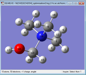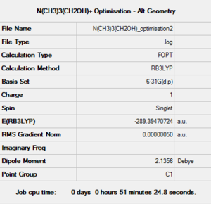 A bigger cation was then submitted for analysis. As usual, the first calcultation to be run was an optimisation. The following parameters were used: