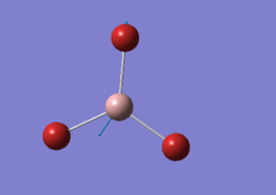 The symmetry of this molecule had to be forced to D3h through the Point Group menu on Gaussian to avoid future problems. This explains why the two previously modeled molecules are classified as having a lower symmetry than expected (Cs rather than D3h) while for this molecule Gaussian is able to pick up the higher symmetry level.