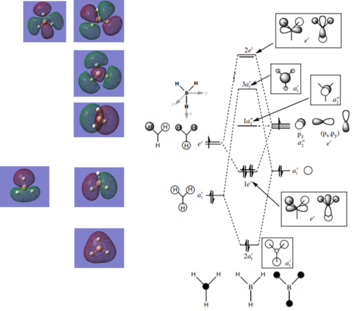 LCAO diagram for BH3 taken from tutorial problem sheet at http://www.huntresearchgroup.org.uk/teaching/teaching_comp_lab_year2a/Tut_MO_diagram_BH3.pdf, accessed on 01/05/2018.