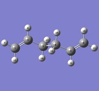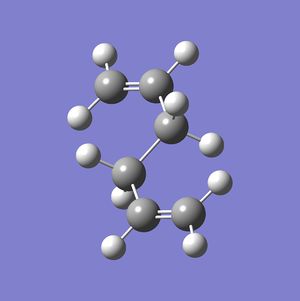 The anti 2 1,5-hexadiene molecule previously optimised to the B3LYP/6-31G* level was then run through a frequency analysis to verify that the energy level obtained was indeed a minimum. The associated log file for can be found here.