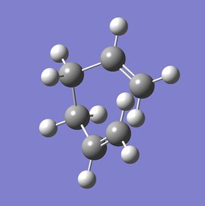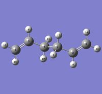 A molecule of 1,5-hexadiene in the anti 2 formation was created and optimised to the HF/3-21G level. The log file can be found here.