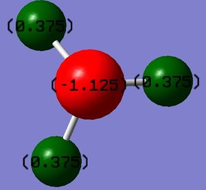 The bond angle of this molecule is 120.0°, and the bond length 1.19 Å, which is the same as was achieved before. Initially it appears that the second method has found a structure which has a lower energy as the energy from the 3-21G basis set method is -26.462 a.u. and the energy from the 6-31(d,p) optimisation is -26.615 a.u., however the two cannot be compared. Only energies from molecules optimised with the same number and type of atoms, using the same basis set and method can be compared, due to the high dependence of the energy on these variables.