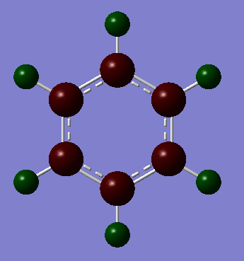 The charge distribution in borazine is much more polarised than the charge distribution in benzene. In the benzene molecule, the Hydrogen atoms all have the same positive partial charge(+0.234e) while the carbon atoms all have slightly more electron density and hence have a slightly negative partial charge (-0.234e) of the same magnitude (but opposite sign) as for the H atoms. This is as expected since C (Pauling electronegativity of 2.5) is slightly more electronegative than H (Pauling electronegativity of 2.1). Overall, the charge distribution is totally symmetric in benzene: all the C atoms have the same partial negative charge and all the H atoms have the same partial positive charge.