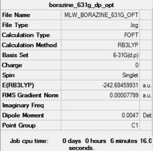 Frequency Analysis Log File MLW_BORAZINE_FREQ_FINAL.LOG