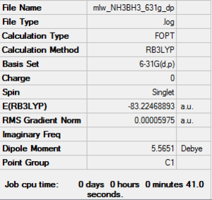 Frequency Analysis Log File MLWILLS_NH3BH3_FREQ.LOG