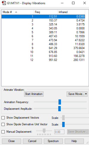 Have you added a table to your wiki listing the wavenumber and intensity of each vibration?