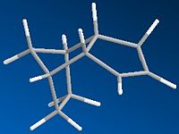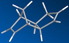 The dimerisation of cyclopentadiene (shown in figure 1) leads to two possible isomers, one called endo and another exo. Molecular modelling of the two isomers was carried out in ChemBio3D. Using molecular mechanics specifically the MM2 force field the energy of the isomers was minimised by changing the geometry. This gave the equilibrium position of both forms of the compound shown in the diagrams on the right. The relative energy of the endo and exo forms and the interactions that make up this number is given in the table to the right.