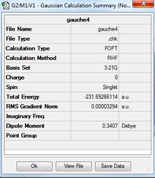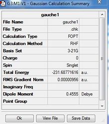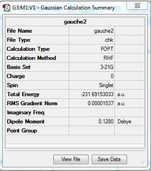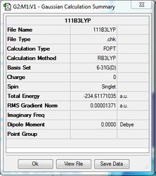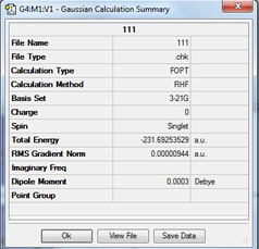 Summary (N.B. Energy is lower than when calculated at HF/3-21G Level of Theory