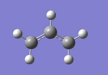 Method 1) Obtain 'guess' structure and Optimize at level of theory = HF/3-21G to TS(Berny). The allyl fragment was first optimized and two allyl fragments were placed together to form a guess transition structure.
