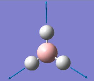 Following on from that A2" and E' lie closely together in energy while A1' and E' do the same, though with higher in energy. This is due to the fact that the last three modes of each molecule involve stretching and shortening of the B-H / Ga-Br bonds, which required a lot of energy or leads to great repulsion.