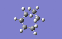 Figure 3.1 shows the addition of ethene to butadiene. The product of the reaction is symmetric and thus there are no stereochemical considerations to account for in the resulting Diels-Alder Adduct. As outlined above, The HOMO and LUMO of the reactant and product must be of appropriate symmetry to permit the concerted formation of bonds. Computing of the HOMO and LUMO for butadiene and ethene will allow for prediction of the orbital symmetry and thus will allow for determination of the pericyclec nature of the reaction.