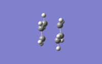 Butadiene and Ethene were generated separately and optimized to a minimum at the B3LYP/6-31G* level of theory. The resulting HOMO and LUMO of both molecules was generated and saved as an image file. The symmetry of these orbitals was determined and plotted on an orbital correlation diagram.