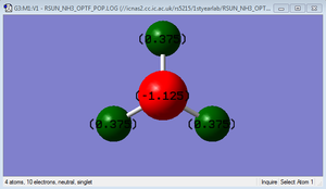 As expected, the charge on the nitrogen atom is -1.125 and the charge on each hydrogen atom is 0.375.