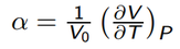 Where α is the thermal expansion coefficient, V is the volume, V0 is the initial volume and T is the temperature. From the formula, it can be seen that the thermal expansion coefficient can be calculated by plotting a volume vs temperature graph, and then calculating the gradient of the linear line of best fit.