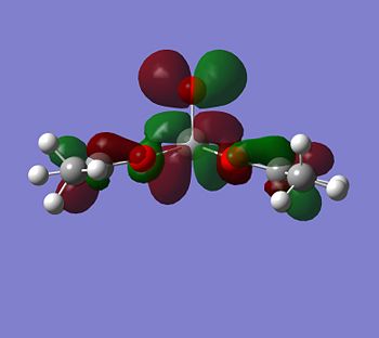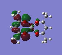 Level 64 is the first time you see orbitals that are centred off of the metal. For V, it looks like an anti-bonding orbital, but it is infact a HOMO. On closer inspection, you can actually see that the d orbtials from the metal seem to bond with the anti-bonding orbitals on the oxygen. It looks like there are 5 planes going vertically through the molecule, red, green, red, green, red. All of these planes are bonding to some extent.