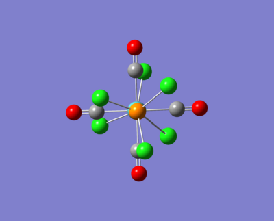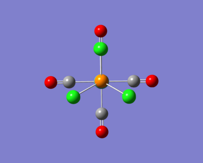 The angle of the Cl-Mo-Cl bond in my calculation was 93.9. In the reference, it was stated that the bond angle is 104.5. This quite large deviation from the ideal octohedral geometry is to do with the large PPh3 cones which, due to sterics, push this angle out wider. This is where the computational analysis falls down and it actually quite incorrect. This probably would have been picked up in geometry optimisation if the full calculation had been done with PPh3 as opposed to PCl3.