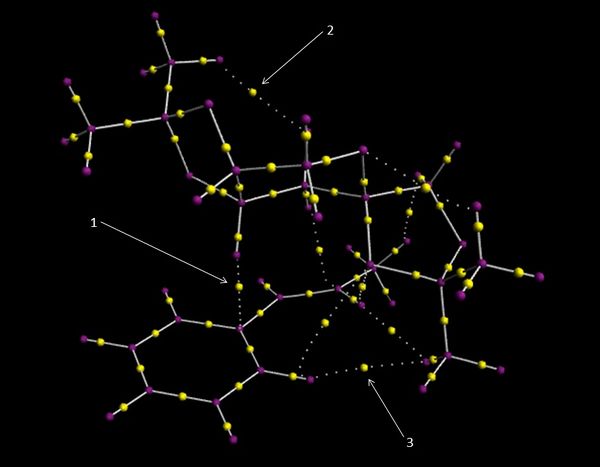 - Interaction 3 is between two hydrogen atoms; H#26 which is on a tBu group and H#46 which is on the phenyl group these two atoms are 0.276 nm apart. The Van der Waals radius of a hydrogen atom is 0.120 nm, so the maximum attractive distance between two hydrogen's is 0.270 nm, therefore as there two hydrogen's are 0.276 nm there is going to be a strong Van der Waals interaction between the two of them. As the Bond Critical Point is at an equal distance from both atoms this confirms that it is a Van der Waal attractive force, and not one of the atoms is polarized and is attracting another oppositely polarized atom. [6]