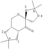 Another interesting feature of the crystal structure of 21 is that the two dioxolane rings are found to be in different conformations. The ring which has anomeric structure a in it is arranged in a half-chair conformation, whereas the ring with anomeric center b in it is arranged in an envelope conformation. This could be due to pyran oxygen causing steric repulsion to oxygen 3 and hence making the envelope conformation more stable.
