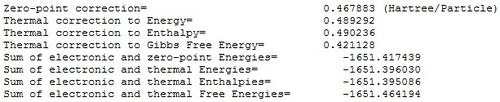 From the calculated 13C NMR it can be seen that generally there is a close agreement between the calculated values and the literature values, as all of the calculated values are within approximately 5ppm of those reported by Paquette et al.[5] There is one significant difference between the calculated and reported NMR values (highlighted in bold) this is from the carbon with the two sulfur atoms attached to it and is due to spin-orbit coupling errors, which are particularly prevalent when carbons are attached to 'heavy' atoms (halogens and sulfur especially). The difference between the literature value and that calculated is an average of 18.53 ppm, as the carbon is attached to two sulfur atoms there will be two lots of spin-orbit coupling errors, if we assume this is an additive effect then spin-orbit coupling correction for C-S is -9.26 ppm.