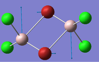 | 14 | The both aluminium atoms move together towards one of the bridging atoms, causing a contraction in bond length between the Al-Br bonds of one of the bridging atoms and stretching to the other. There is minimal movement from the terminal atoms |