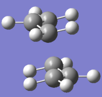 Reactant and product geometries were thus modified so that they are closer to the boat transition states. The dihedral angle of the second carbon to the fifth carbon (C-C-C-C) was set to 0 degrees, and the second to forth carbon (C-C-C) and third to fifth carbon (C-C-C) was reduced to 100 degrees.
