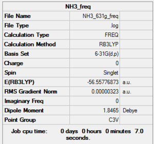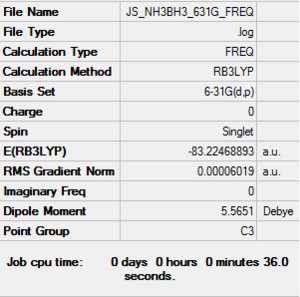 The above frequency calculations show that all the structures were optimized. The low frequencies of within the accepted range show accuracy in the calculations, and now allows for full analysis of energy as well as qualitative molecular orbital and NBO analysis, to get a better understanding of the bonding present in each of the structures and how the charge is distributed across the molecules.